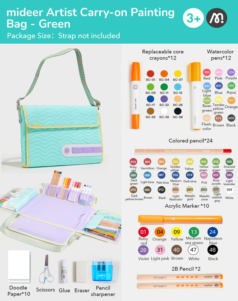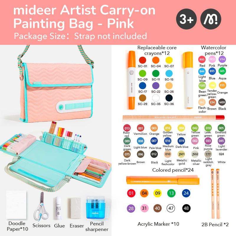 The Mideer Artist Carry-on Painting Bag is a versatile and practical solution for young artists on the go. Designed for easy storage and transport, this bag holds all the essential art supplies—perfect for creative play at home, school, or travel. With its durable, spacious design, it keeps supplies organized and ready for artistic adventures.