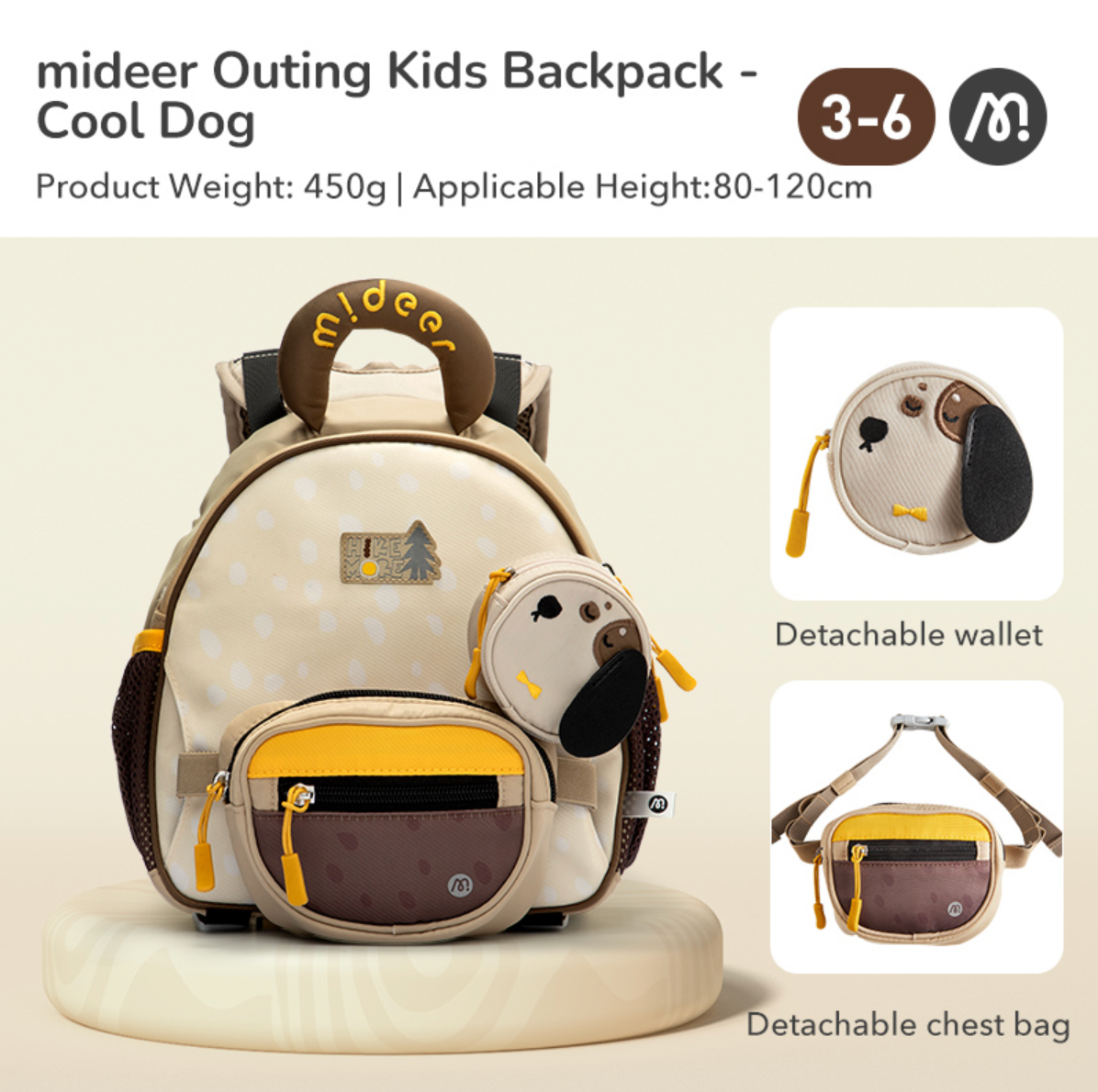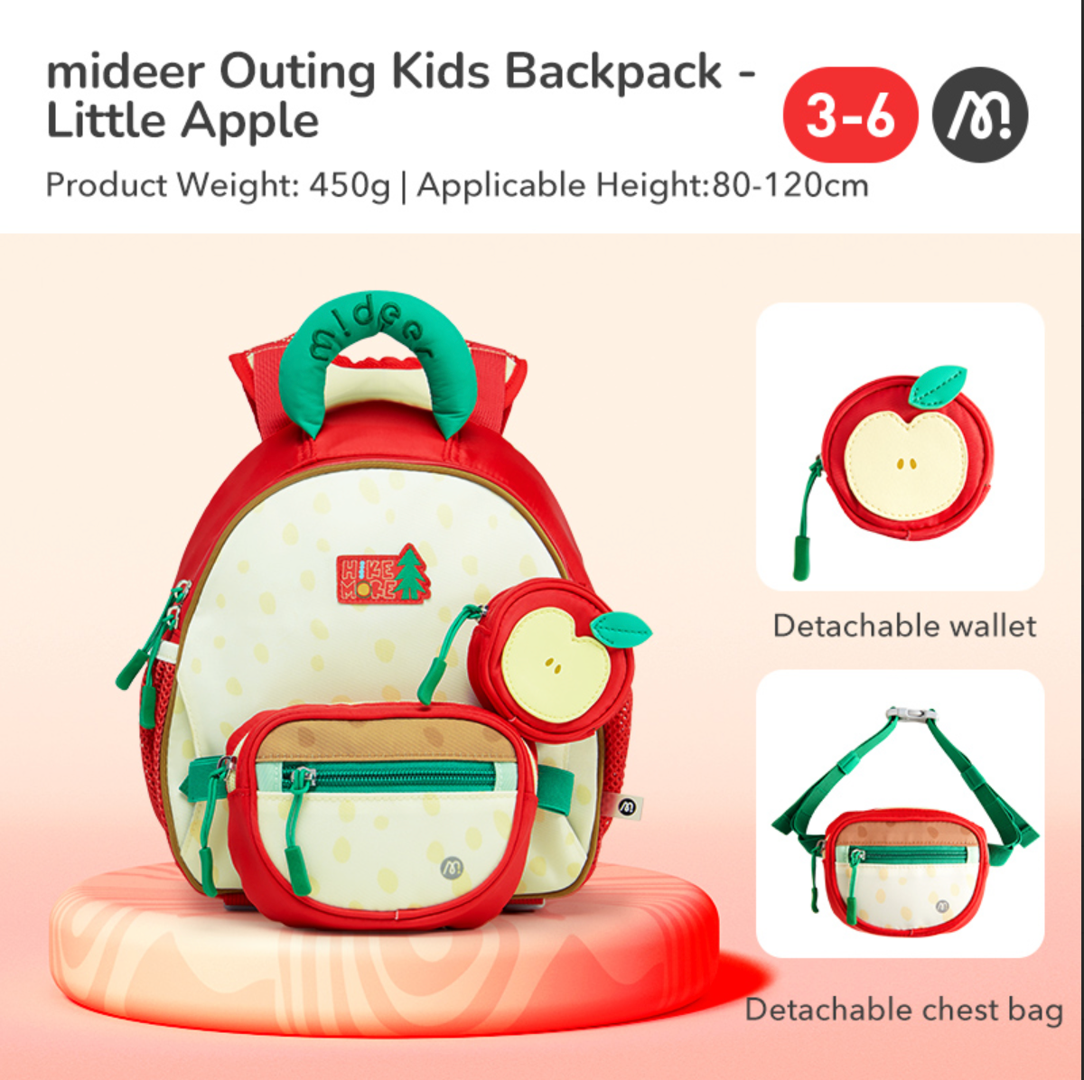 The Mideer Outing Backpack is designed for young adventurers, offering a lightweight and practical solution for daily outings. Crafted from durable nylon, it features a detachable design, waterproof zippers, and breathable EVA straps for comfort. Ideal for children aged 1–7, this backpack ensures ease of use and convenience on the go.