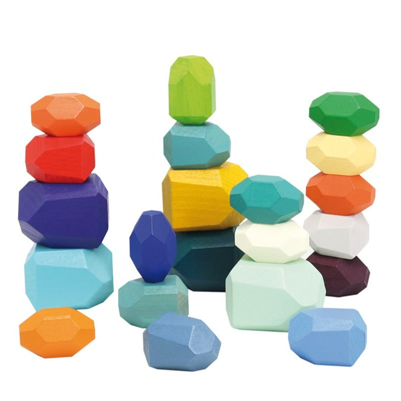 21 beech wood rocks to build, stack, size clasification and counting. 3,7 to 5 cm.